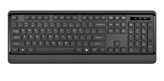 Introducing the WKM-806 ErgoChoc Wireless Keyboard with palm rest and Mouse Combo Kit. A reliable 2.4 GHz connection links both devices via a single Nano-receiver, using just one USB port. The wireless keyboard features chocolate-style keycaps that provide a superior typing experience. Ergonomically designed, the keycaps are convex on the first and last rows and concave for the remaining keys. The wireless optical mouse, with its fast response and precision tracking, ensures smooth navigation across all your applications. The 2-button design, along with the scroll wheel, offers ease of use, while the ambidextrous design makes it suitable for both left- and right-handed users.